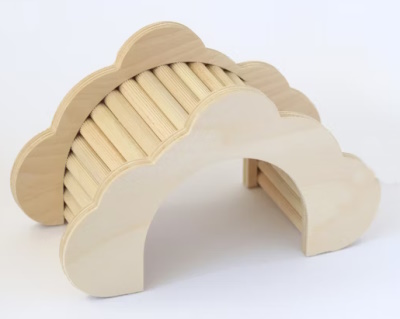 Ein vorbildliches Futterspielzeug. Robustes Birkenholz und Beschäftigung für den Hamster.Achte außerdem darauf, dass der Hamster sich nirgendwo einklemmen oder unter/ hinter Gegenständen hindurchrutschen kann.